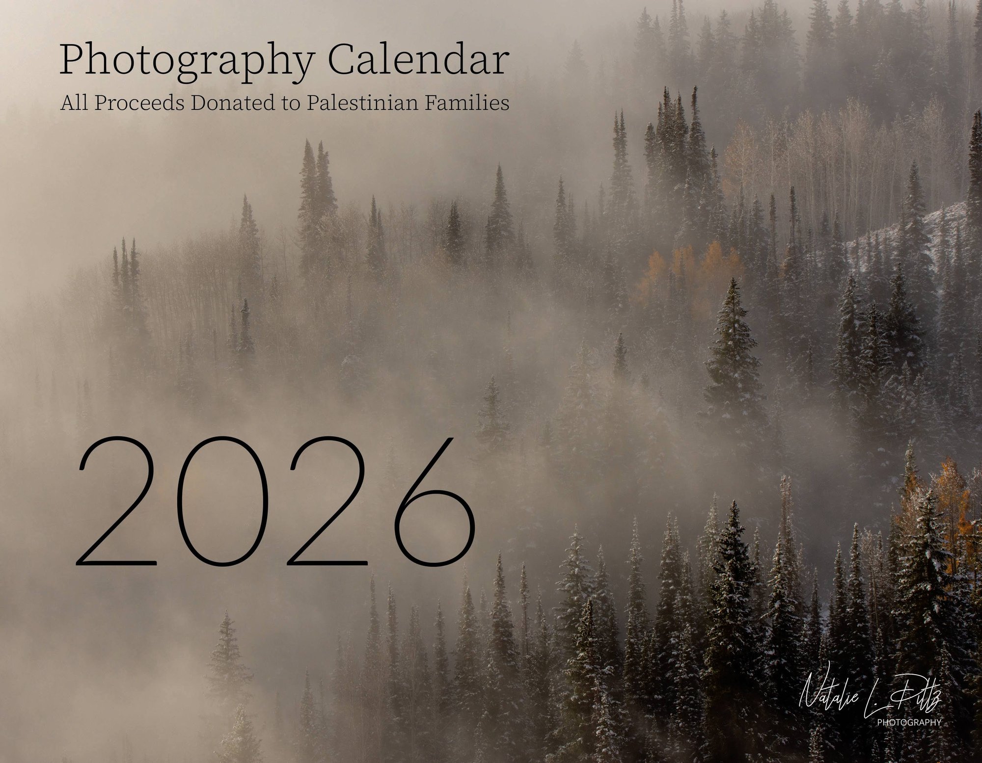 My 2026 calendar is a 12 month photography calendar featuring photos taken by me. Each calendar will cost $20, with $7 covering the cost of the calendar, and $13 for a donation. I donate all proceeds to different causes every year and this year I have chosen to split the proceeds between 3 Palestinian Families and the Sameer Project.
